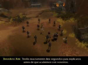 Tras acabar con las arañas, saltará una nueva cinemática. En ella se vivirá una situación tensa, en la que habrá una discusión subida de tono entre la Hoja Brillante y los jugadores. Al contrario de lo que nos ha dicho el Manto Blanco, los miembros de la Hoja Brillante afirman que querían salvar a los Elegidos y que los del Manto Blanco son los que quieren asesinar a los elegidos… por otra parte, nosotros hemos sido nombrados recientemente miembros del Manto Blanco y es lógico que la Hoja Brillante desconfíe de nosotros, y también es lógico que nosotros desconfiemos de ellos, máxime cuando parece que querían entregar a los Elegidos como merienda para las arañas. Alguien nos ha estado engañando, pero, ¿quién? ¿los bandidos de la Hoja Brillante, o los honorables caballeros del Manto Blanco?