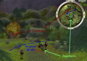 Si queremos hacer el EXTRA, giraremos por el primer camino de la izquierda que encontramos en la cooperativa, e iremos avanzando matando monstruos. Al fondo, veremos un par de exploradores centauros. Es importante NO MATARLES, ni acercarnos a su área de detección (círculo interior de la brújula).