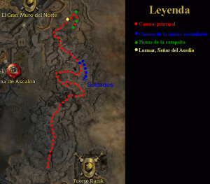 Tras pasar la segunda puerta el camino continúa sin más incidentes y con pocos enemigos, hasta que tras doblar una colina se divisa a lo lejos un NPC llamado «Lormar el Señor del Asedio», con el cual hablaremos. PRECAUCIÓN: hay que matar primero a los enemigos que hay antes de él, pues saltará una cinemática, y durante ese tiempo, los enemigos podrán atacarnos, e incluso llegar a matar un equipo entero. Si se mata a los enemigos cercanos, se puede ver la cinemática sin riesgo alguno, pero en caso de que empezaran a atacar, convendría saltarse la cinemática.