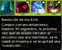 Cuando nos bendiga, bastará usar cualquier habilidad y automáticamente se nos quitará la miasma, o bien, nos librará de las pesadas cegueras, hemorragias y debilidades. También será un gran aliado peleando y nos lanzará Aura de balthazar