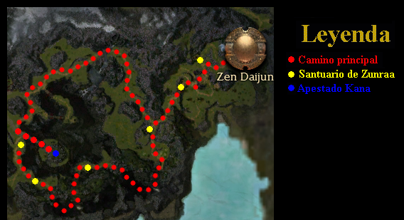 Después de deambular de una parte a otra de la isla de Shing Jea peleando contra los apestados, llegamos al valle sagrado de Zen Daijun, un lugar sagrado para la gente de Cantha, y un punto de pereginación para aquellos que buscan la iluminación. En este valle habita Zunraa, un espíritu antiguo que aparece en forma de unicornio, y al cual podremos invocar para que nos ayude en nuestra misión.