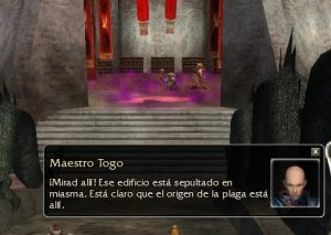 Una vez limpio el puente, debemos acabar con todos los monstruos que quedan en el templo. Allí hay una última zona de miasma, pero está «bugueada»: si te metes en ella, no sufrirás degeneración.
