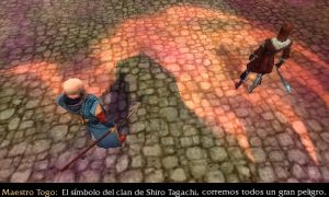 Una vez limpia la zona, acabará la cooperativa y nos darán la correspondiente bonificación por tiempo (oro, plata o bronce), y saltará una cinemática. En ella, Togo descubrirá el símbolo de Shigo Tagachi, en medio de la miasma. Shiro fue el traidor que asesión al emperador hace ya 200 años, y cuando se hizo justicia (se le mató), convirtió en piedra el bosque y en jade el mar. Su espíritu parece ser que no murió, y aún vaga por Cantha causando el mal… y esta enfermedad es una manifestación de su maligno poder.