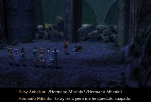 Saltará una cinemática. En ella podemos ver que se derrumba el dintel de la puerta, de forma que los escombros bloquean el paso (bueno, seguramente se podría saltar por ellos), de forma que Mhenlo queda a un lado, y Danika con el resto de jugadores al otro lado. Habrá que buscar otra salida. Si hemos matado a todos los monstruos, podemos visualizar la cinemática completa sin peligro alguno. En ese momento, se abrirán todas las puertas en el mapa marcadas como puertas número 2