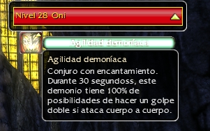 A medida que avancemos en el mapa podrán salir Onis. Estas criaturas son asesinos de nivel 28, y son muy peligrosos. Lo mejor es siempre ir en grupo, porque aparecen de la nada y hacen mucho daño. A veces 3 Onis son suficientes para acabar con un par de personajes fácilmente, sobretodo gracias a esta habilidad: agilidad demoníaca