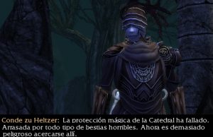 3.- Los escombros de la catedral te interrumpirán constantemente. Usa conjuros que se lancen en menos de 1 segundo si no quieres ser interrumpido, o bien, utiliza habilidades que lo impidan: glifo de concentración, mantra de determinación o calmada sea tanasen. Los enemigos del camino de la izquierda tienen también golpe de distracción y pueden derribarte, por lo que ese camino es poco recomendable para ir con casters. Usa esbirros de ataque físico: guerreros, asesinos y guardabosques.