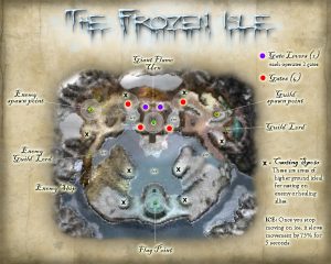 Con diferencia la mas conocida y mas usada, aquí el equipo defensor tiene un castillo, el atacante desembarca. Hay un camino directo en cuyo centro esta la bandera y dos caminos secundarios cada uno sale de la parte derecha de cada base, es especialmente peligroso el camino derecho del equipo defensor ya que es fácil que un grupo de enemigos se deslicen por ahí y mate a tu Lord mientras tu vas limpiando de NPCs el castillo. Mantén siempre a alguien encargado de vigilar esa puerta, mientras vacías de NPC el castillo, esta puerta es accesible andando vadeando el muro del castillo.