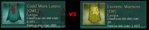 – Victoria de Esoteric Warriors: EW ganaría 1 puntos, Guild Wars Latino perdería 1 punto