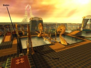 Zona «común». Al fondo se observa una puerta roja, que conduce a una de las dos zonas de combate. Si sobra tiempo, estos obeliscos sí se suelen capturar.
