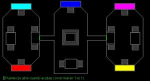 Nota: el mapa se complica más estratégicamente, porque a parte del puente, puede accederse a la zona enemiga por el río (por debajo del puente)