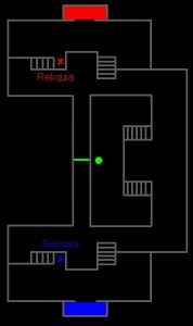 Los objetivos de este mapa son iguales que el otro mapa anterior de reliquias (templos impíos). Lo único que cambia es el mapa. Hay dos caminos a diferencia del otro mapa de reliquias, uno es corto, el pasillo central, pero una puerta se interpone en el camino. Dicha puerta se abre y se cierra accionando un botón, al cual se accede por el camino largo, por las escaleras que hay saliendo por uno de los laterales de la base. La ubicación del botón es muy estratégica, porque desde ahí se tiene una visión por encima del pasillo central, por el que van los demás jugadores y desde ahí se puede atacar a distancia.